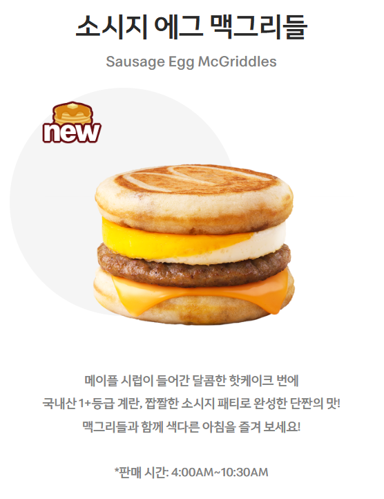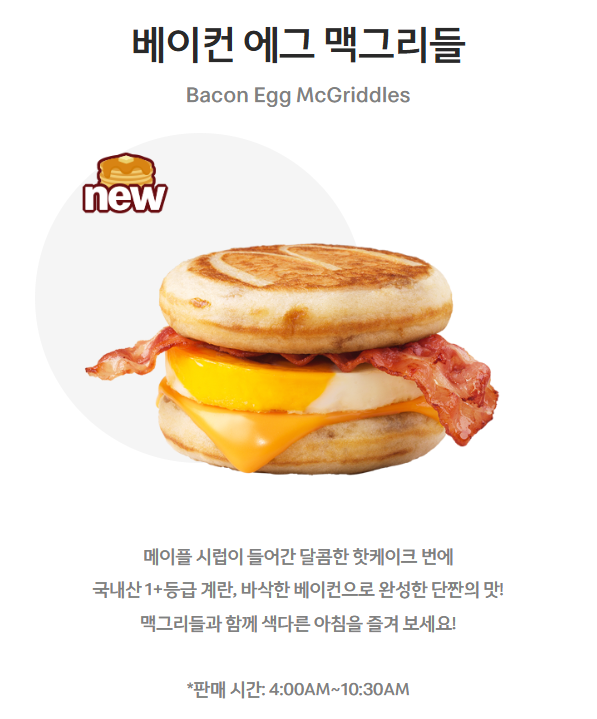 맥모닝은 맥도날드에서 아침 시간대에만 판매하는 조식 메뉴입니다.