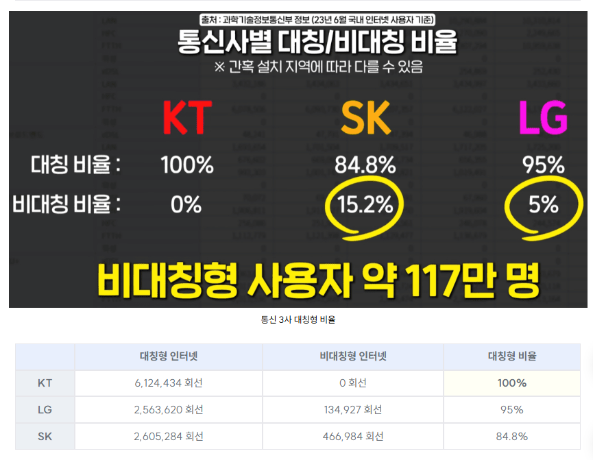 대칭형 인터넷 설치 비율 비교